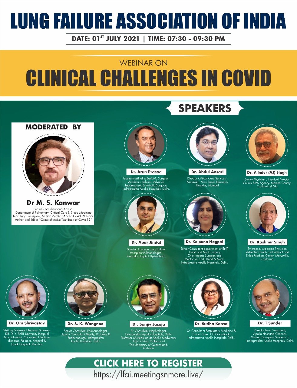 A Webinar On “Clinical Challenges In Covid” was held on July 1, initiated by Dr. M S Kanwar, MBBS, MD, DM, Institutes of Critical Care Respiratory and Sleep Medicine, Indraprastha Apollo Hospitals, New Delhi. In this webinar experts from all across the country came together to discuss key issues on “Clinical Challenges In Covid-19”