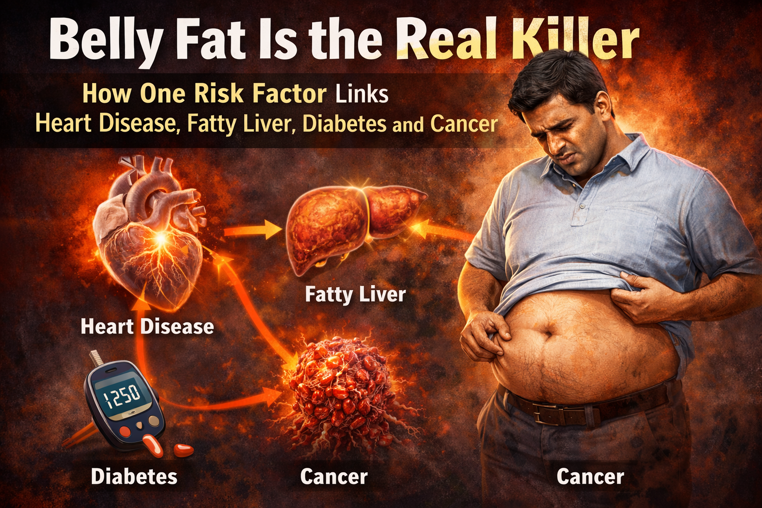 Belly fat is not just a weight issue—it is a biological warning sign. Its role in heart disease, fatty liver, diabetes, and cancer makes it one of the most powerful predictors of future health.