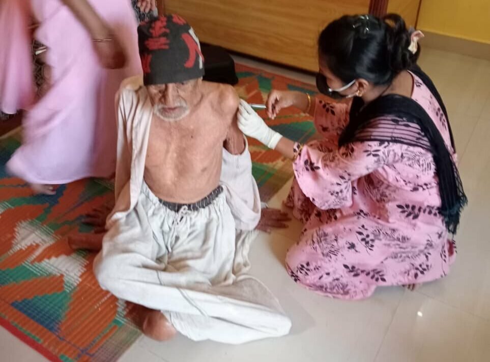 महाराष्ट्र के हिंगोली ज़िले में 108 वर्षीय बुजुर्ग ने टीका लगवाया।