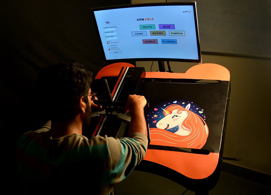 The key features of ‘ArmAble’ device include: Affordability, engaging Game-based Therapy, higher Repetitions and Intensity, Data based quantified progress and recovery and full ROM for the Arms
