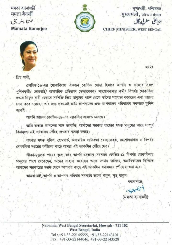 The government of West Bengal is making arrangements to provide all the citizens of the state with free vaccines for the novel coronavirus, Chief Minister Mamata Banerjee has said. “I am happy to announce that our government is making arrangements to facilitate the administration of #COVID19 vaccine to all the people of the state without any cost,” said the chief minister.