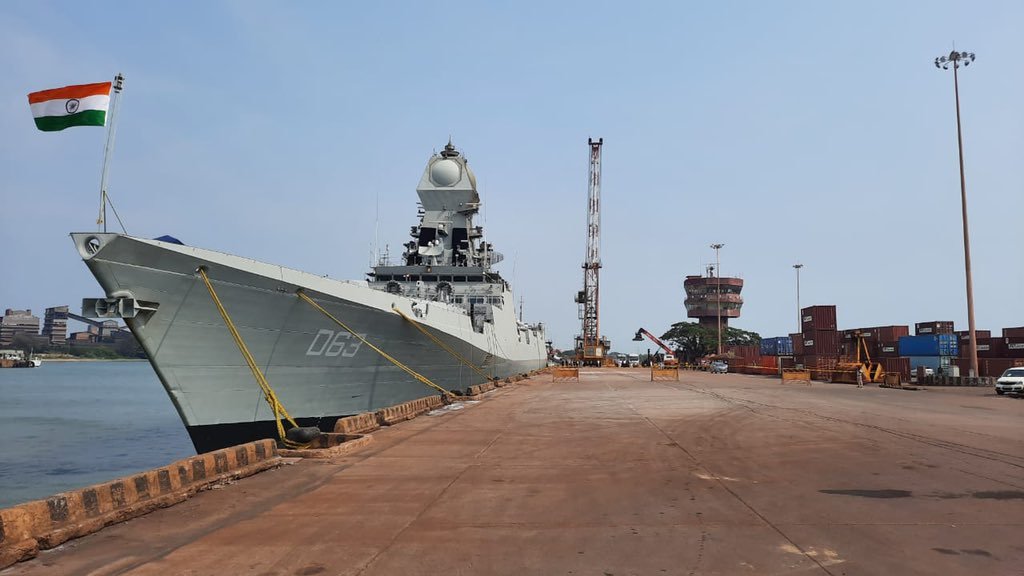 Indian Navy Ship Kolkata carrying 40 metric tonnes of liquid medical oxygen, 400 oxygen cylinders and 47 oxygen concentrators from Kuwait and Qatar arrived at New Mangalore Port in India on Monday, reported the news agency ANI.