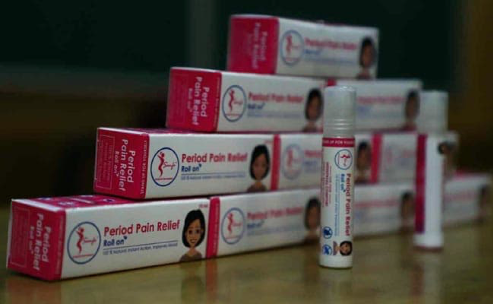 An essential oil based formulation, the Sanfe roll-on, has to be applied on lower abdominal area, lower back and legs during menstrual cramps. It provides a soothing action on cramp affected areas followed by a heating sensation which relieves the pain. The roll-on is medically tested and FDA approved with no side effects.