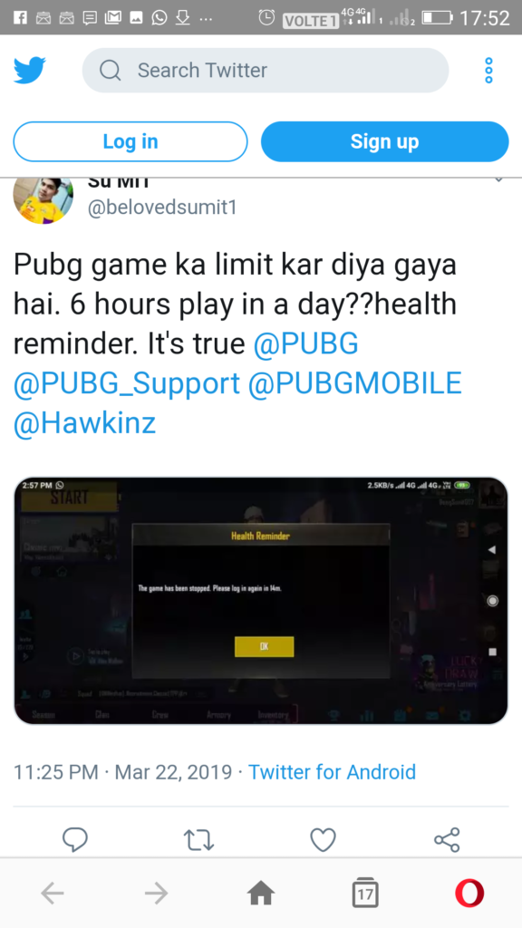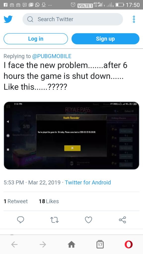 Though PUBG Mobile hasn’t clarified on whether these new feature being tested or not for now but many Indian user of PUBG has faced many warnings and shutdown last week. PUBG Mobile players started sharing screenshots of the health reminder which says, “You’ve played the game for 6hours today. Please come back at 2019-03-23 05:30:00”. According to this, users who have played PUBG Mobile for six hours were barred from playing the game and could only login the next day at 5:30am.