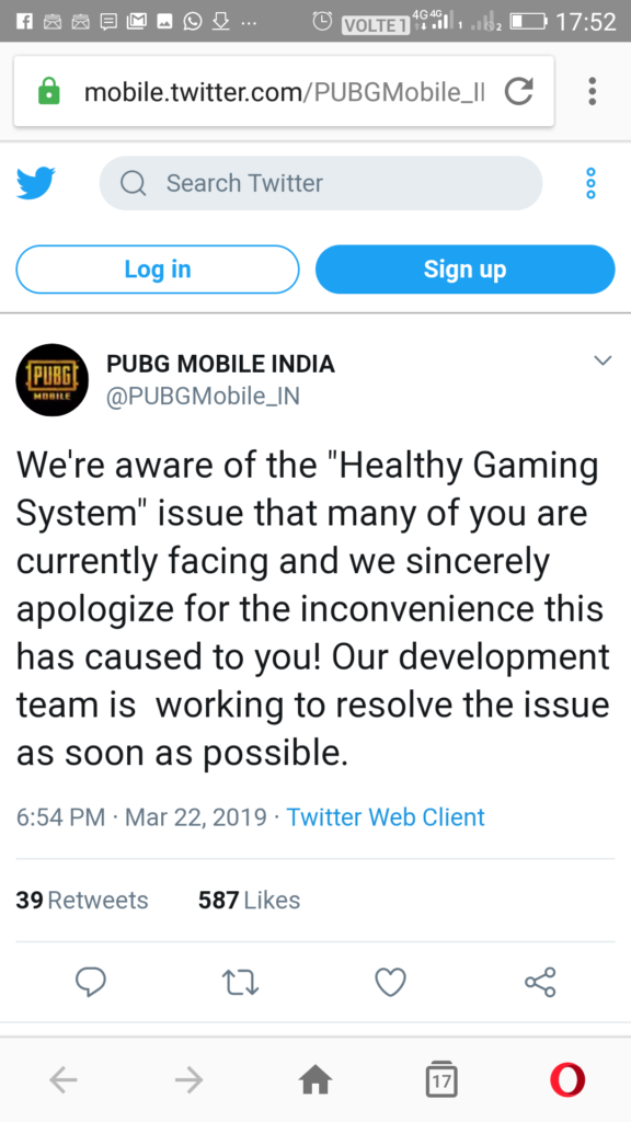 In a tweet, PUBG Mobile India said, “We’re aware of the “Healthy Gaming System” issue that many of you are currently facing and we sincerely apologize for the inconvenience this has caused to you! Our development team is working to resolve the issue as soon as possible.”