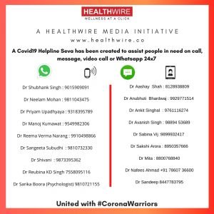 Healthwire has launched COVID-19 Helpline seva which will assist people in need on call, message, video call or WhatsApp 24×7.