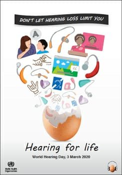 On World Hearing Day 2020, World Health Organization highlights that timely and effective interventions can ensure that people with hearing loss are able to achieve their full potential. The key messages for World Hearing Day 2020 are : 1. At all life stages, communication and good hearing health connect us to each other, our communities, and the world. 2. For those who have hearing loss, appropriate and timely interventions can facilitate access to education, employment and communication. 3. Globally, there is lack of access to interventions to address hearing loss, such as hearing aids. And 4. Early intervention should be made available through the health systems.