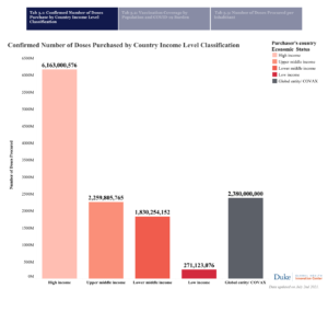 The Wall Street Journal reported that wealthy countries have now reached supply agreements with vaccine manufacturers through 2023, meaning the vaccine divide between rich and poor countries will grow even wider. (“Rich Nations Secure Shots Through 2023,” WSJ, June 2, 2021) “About 6 billion doses have been purchased by more than two dozen rich nations and the European Union, according to the latest figures from the Duke University’s Global Health Innovation Center, which tracks vaccine purchases. By comparison, the rest of the world has combined to purchase more than 3 billion doses.”