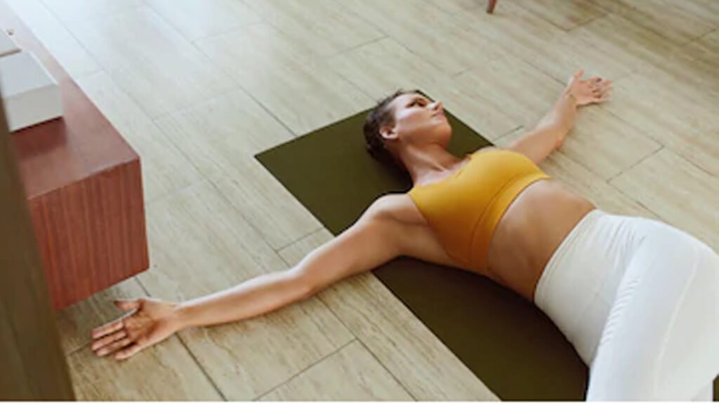 2. Reclining Twist- If you’re dealing with aches and pains from your period, it feels good and has massive health benefits. This pose relaxes the abdominal organs, which may relieve muscle cramps. The hip muscles and back muscles are stretched while doing so, relieving tension in the body.