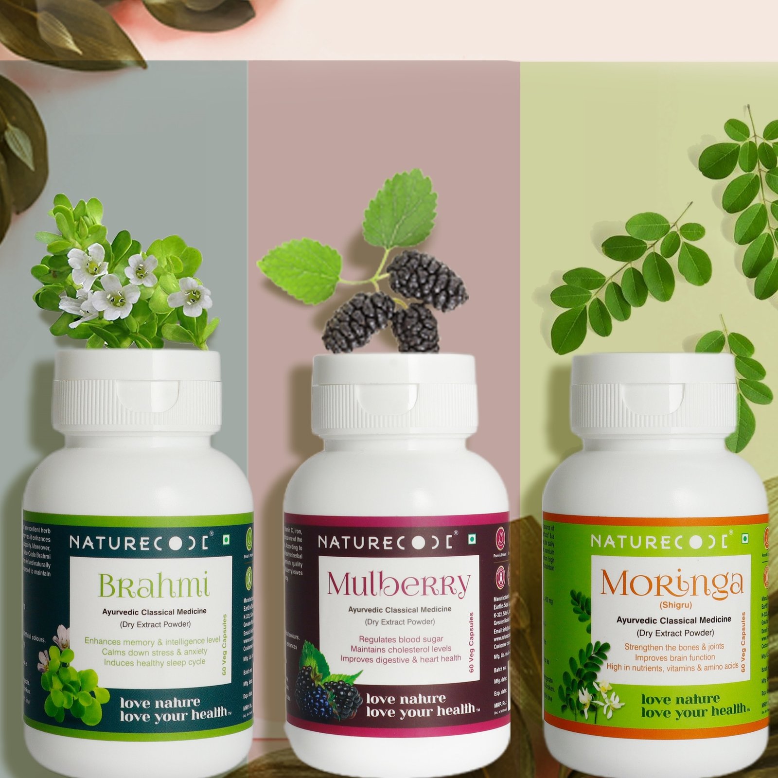 NatureCode also has Dry extract Herbs like Brahmi ,Neem, Moringa, Tulsi, Giloya, Amla, Mulberry, Green Tea, Green Coffee, Garcinia Cambogia, Shilajit and Safed Musli etc.