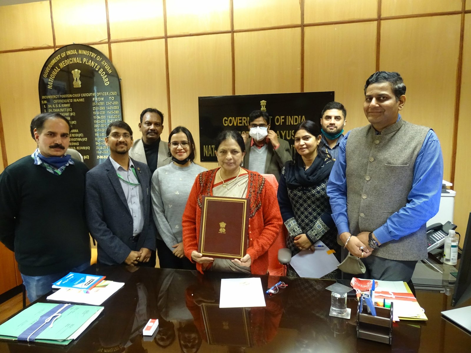 An MoU was signed between National Medicinal Plants Board and CSIR-CIMAP, Lucknow, on 6th December, 2021 to promote the production quality of planting material (QPM) of medicinal plants.#Ayush pic.twitter.com/xltJjkOaVy