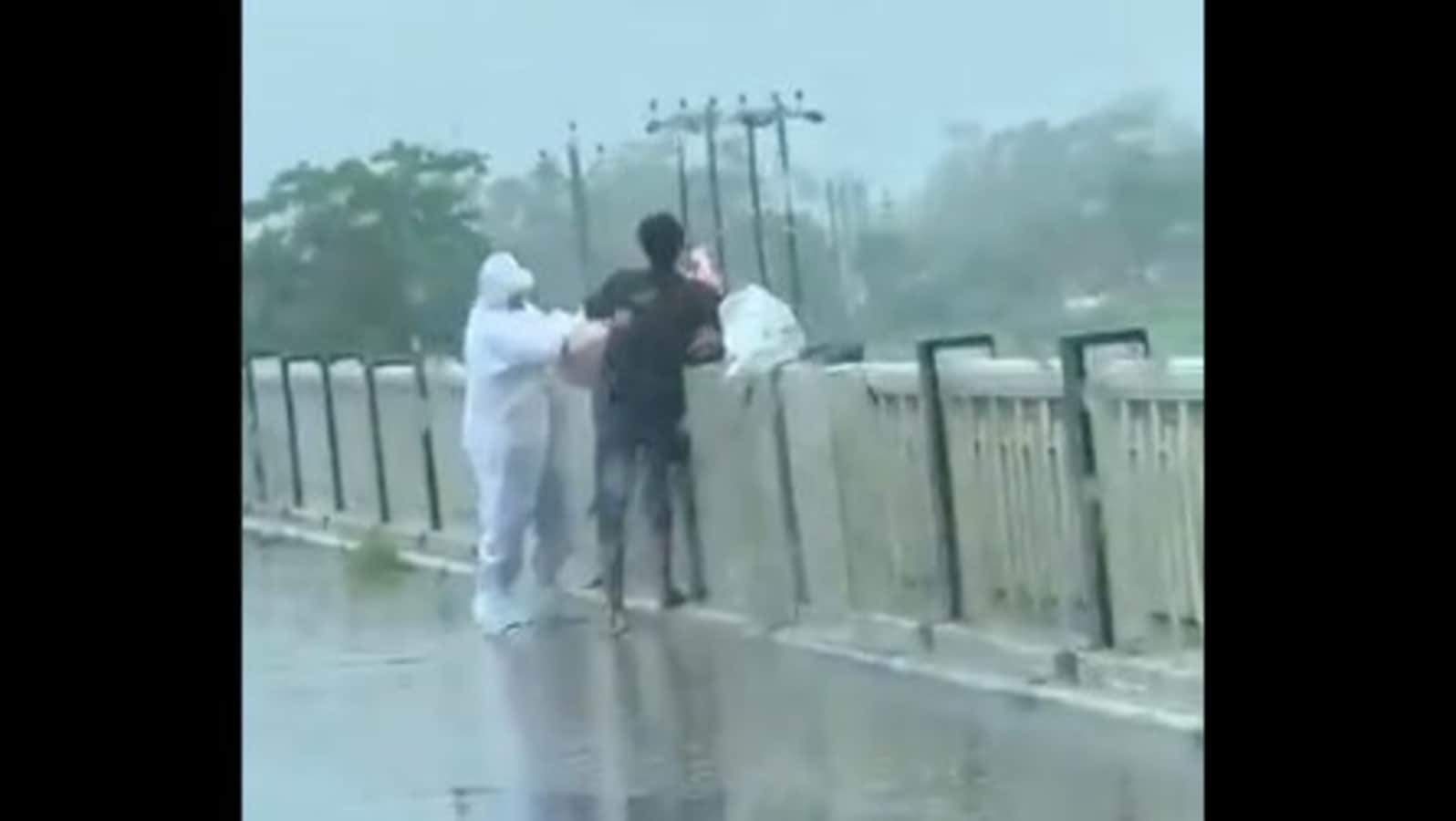 In the viral video, shot by passersby in a car, shows two men with the body in the pouring rain. The men, one of them in a PPE suit, are seen lifting the body onto the edge of the bridge over River Rapti in the 45-second clip.