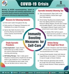 Ministry of AYUSH had issued an advisory on various immunity enhancing steps from the time tested approaches of Ayurveda. The advisory has again been reiterated in these testing times to support the efforts of all as a measure towards enhancing ones immunity.