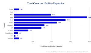 Similarly, the total number of cases and deaths per million is lower in India than these countries which have been hit hard by the pandemic.