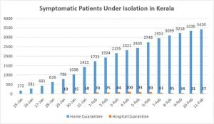 As the above graph shows, with strict travel restrictions and other measures in place, daily hospitalisations of suspected cases have shrunk considerably in Kerala, and number of patients daily discharged after a negative report and subsided symptoms outnumber the former consistently. Timely dissemination of surveillance data was an effective way in which the government of Kerala managed to keep panic under check, and gain the confidence of the community. The state looks ready for any possible spread even at the community level.