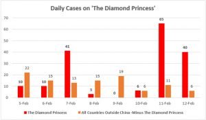 The unfolding story of the cruise ship The Diamond Princess, off Japanese coast is instructive. In terms of positive cases of Covid-19, The Diamond Princess has been termed as “the second largest country in the world right now behind only to China”. The following graph shows clearly what 2019-nCoV can do in a relatively crowded space with space constraint. Experts have termed passenger population density as a reason for the rapid spread of the virus. Sounds very familiar, if one knows Indian urban spaces and hospitals. Therefore, the cruise ship is a particularly interesting part of this outbreak for countries like India. As of 12th February, of a total of 441 confirmed cases outside China, a staggering 175 are on The Diamond Princess alone. Recent reports indicate that on 13th February alone, 44 more travelers have tested positive, including Indians.