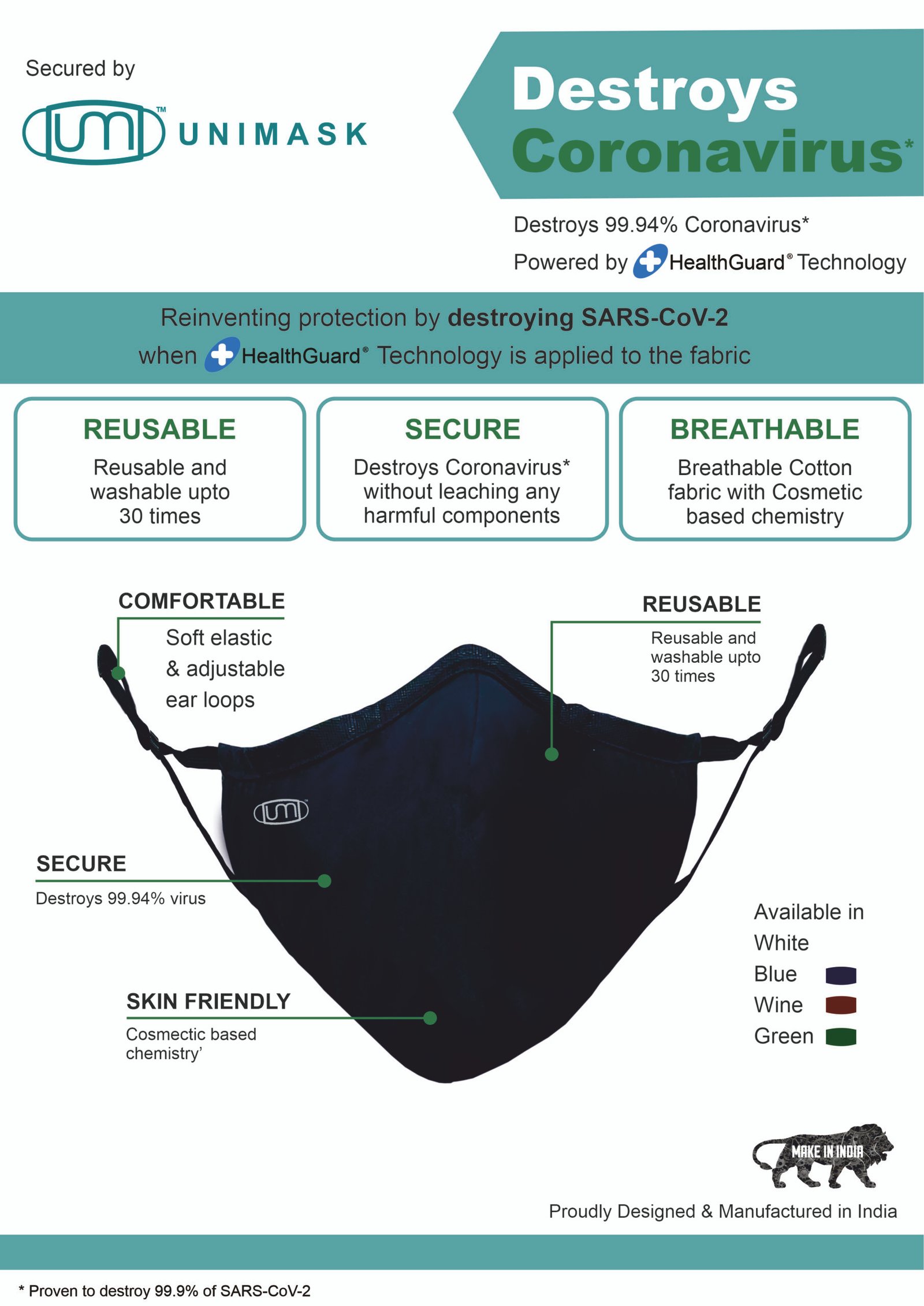 Mr. Kapil Bhatia, CEO, UniMask speaking on the launch of the new line-up said, “We are very happy to contribute to the health and wellness of our customers with our new range of masks which are superiorly designed keeping the environmental conditions in mind. These newly launched masks are made of rich cotton fabric and don’t leach any harmful components like other similar category masks. Powered by revolutionary Healthguard technology from Australia and these masks ensure the utmost protection against the SARS-CoV-2 Virus.”